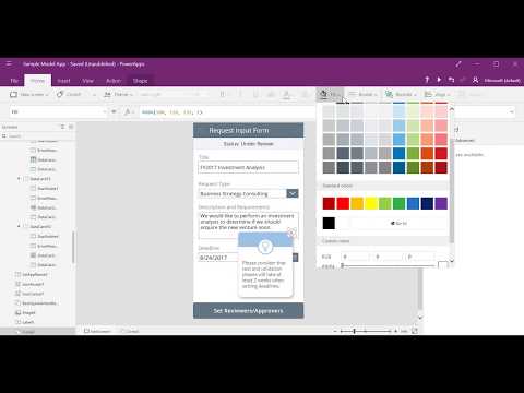 @ArtsyPowerApper from Twitter demonstrates how to easily configure a pop-up message in PowerApps! Key feature references: Visible Property: UpdateContext() Function: Suggestion: I just used PowerPoint shapes and icons to create the picture background called "DialogBG". After I created it in PowerPoint I right clicked on the grouped shapes and selected "Save as Picture". Nothing could be easier! LOL